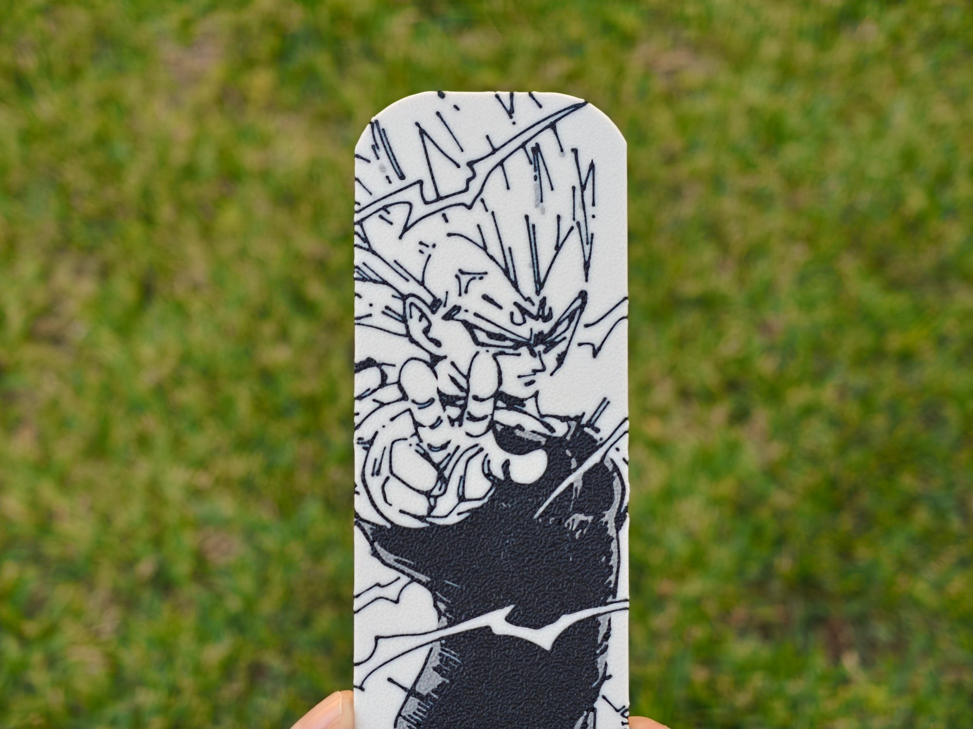 Este marcapáginas 3D es un tributo al clímax del arco de Vegeta en Dragon Ball Z: su lucha interna, su orgullo desbordado y su redención final. Captura la intensidad del guerrero que lo arriesgó todo, no por la victoria, sino por proteger a Bulma, a Trunks y, por una vez, incluso a Kakarotto.